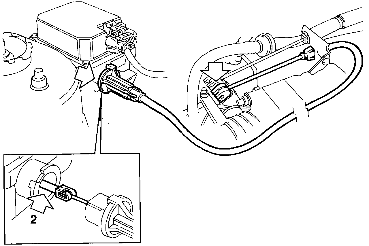 Important: The stepping motor is integrated in the Cruise Control system control module and the cable to the throttle body is connected directly to the control module.
