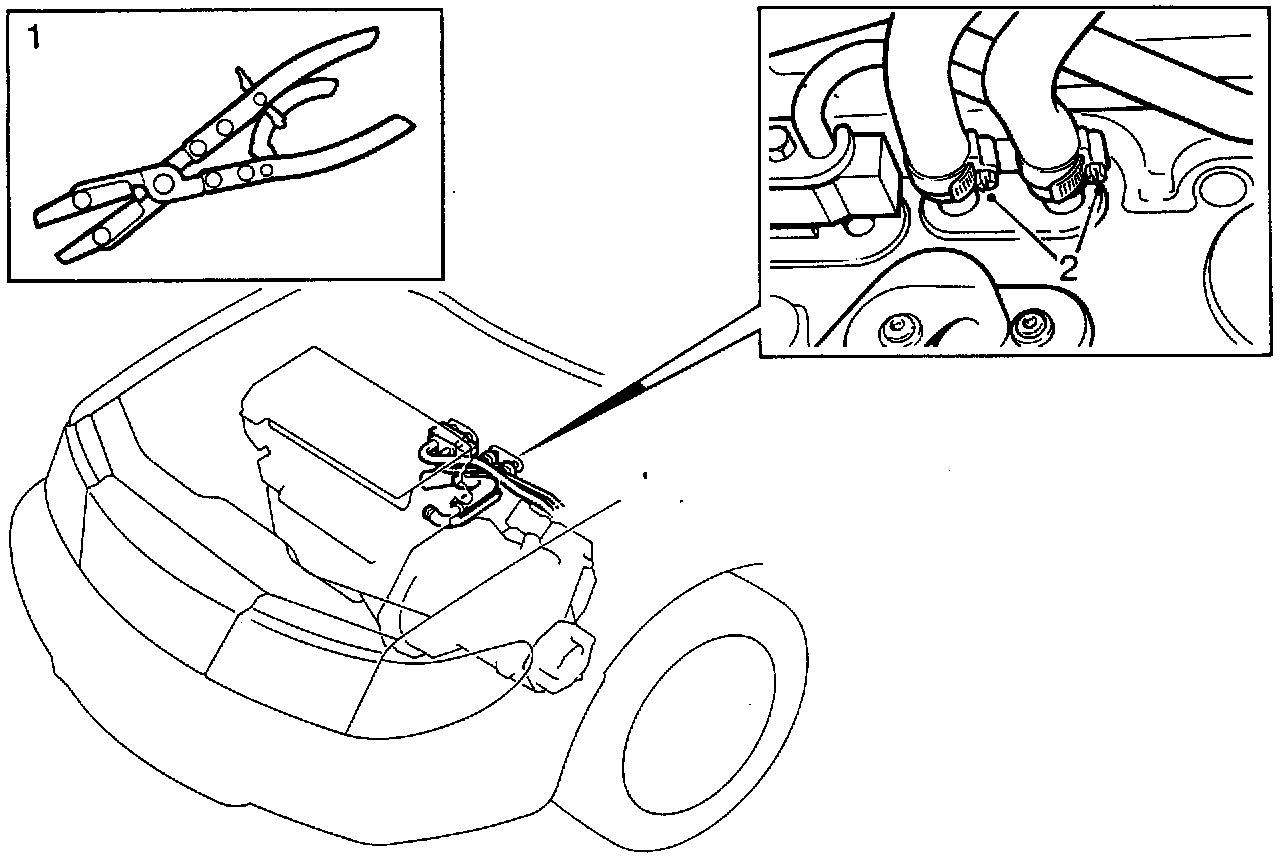 1. Fit hose clips on the hoses by the heater-box.