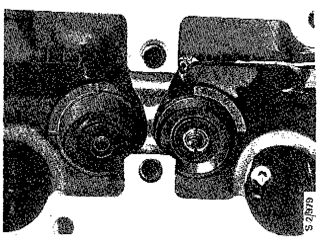 3. Fit protective sleeves 8393746 over the valve springs to prevent the tappet guides from being scored. Note how the sleeves are fitted.