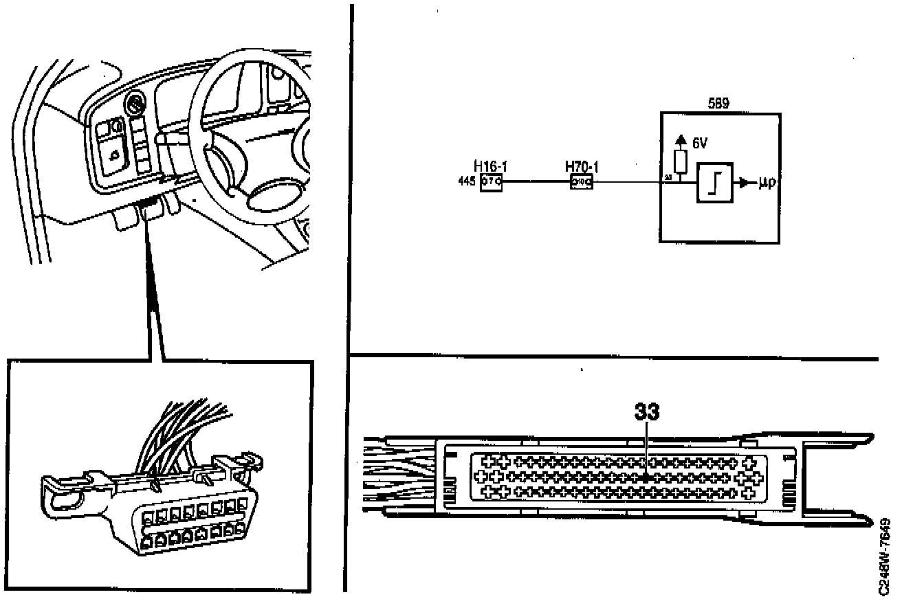 ^ Check The Wiring between pin 7 of the data link connector and pin 33 of the Trionic control module for continuity and shorting. Repair or replace the wiring if necessary. Continue with point 3.