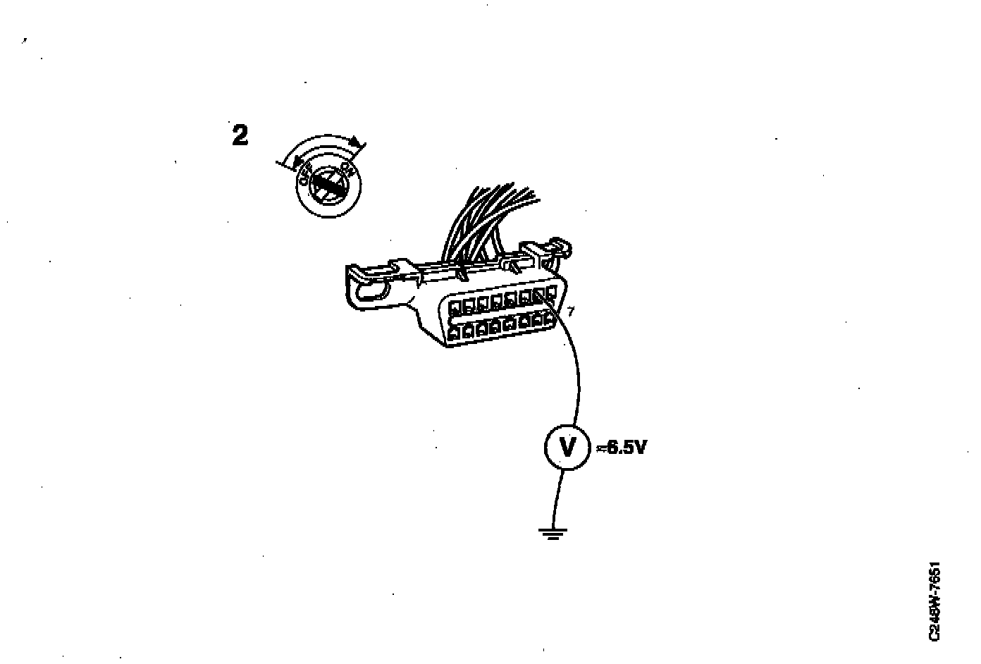 - Take a voltage reading in the data link connector across pin 7 and a good ground point. Approx. 6.5 V.