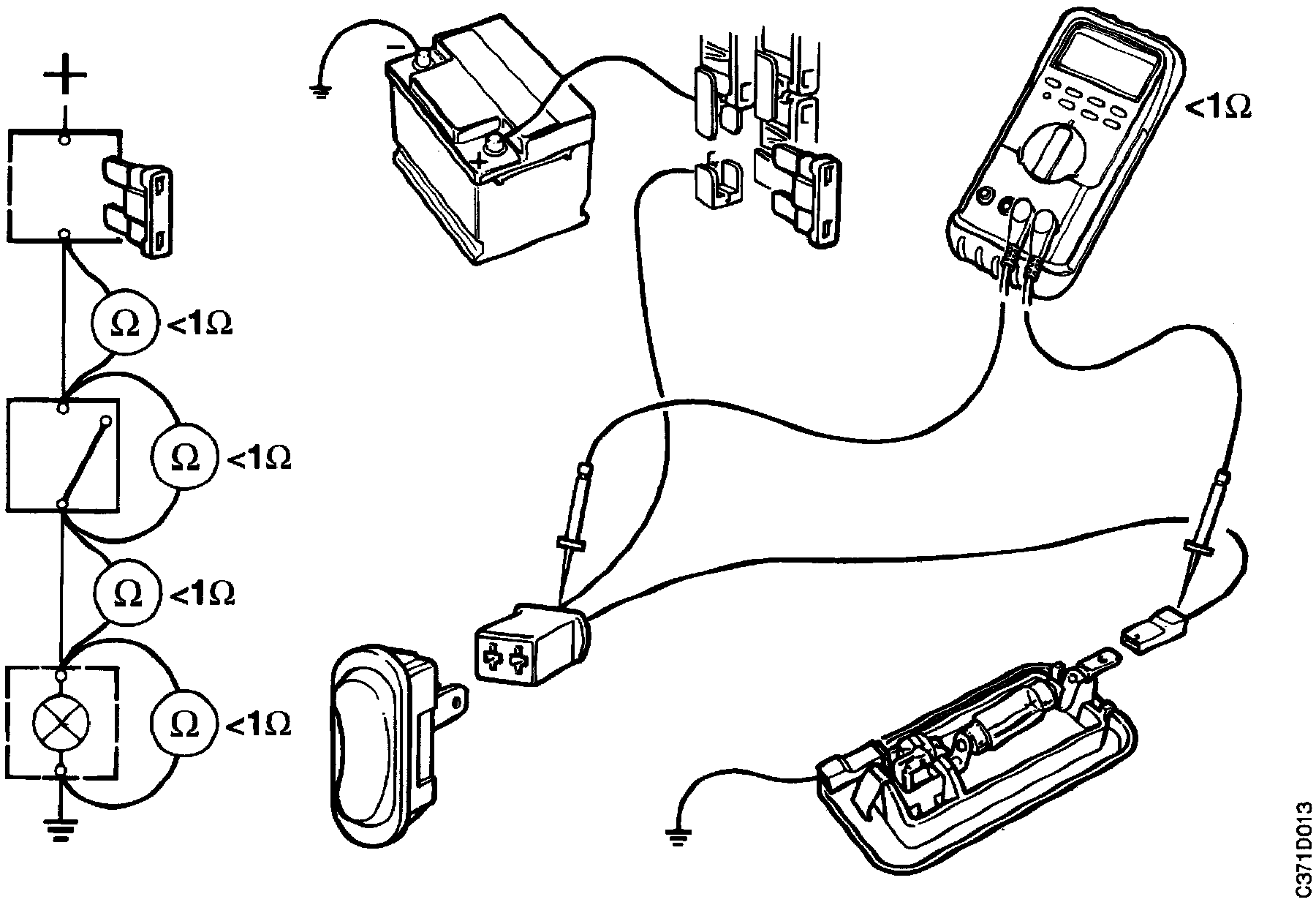 4 .If the ohmmeter shows a resistance < 1 ohm, there is no open circuit.