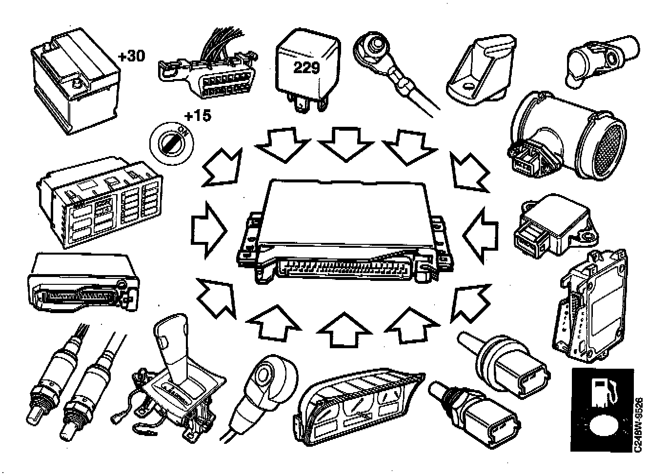 14. Oxygen sensors before three way catalytic converters