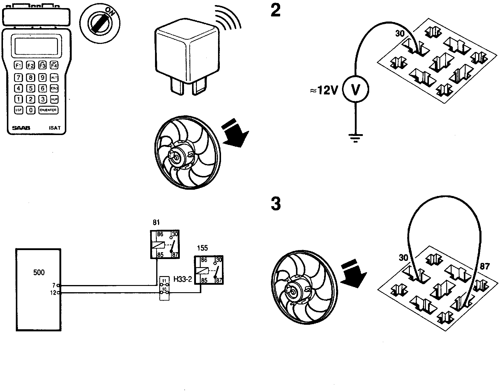 2 To start the radiator fan, select "ACTIVATE RELAY" from the menu and then "RADIATOR FAN LOW".