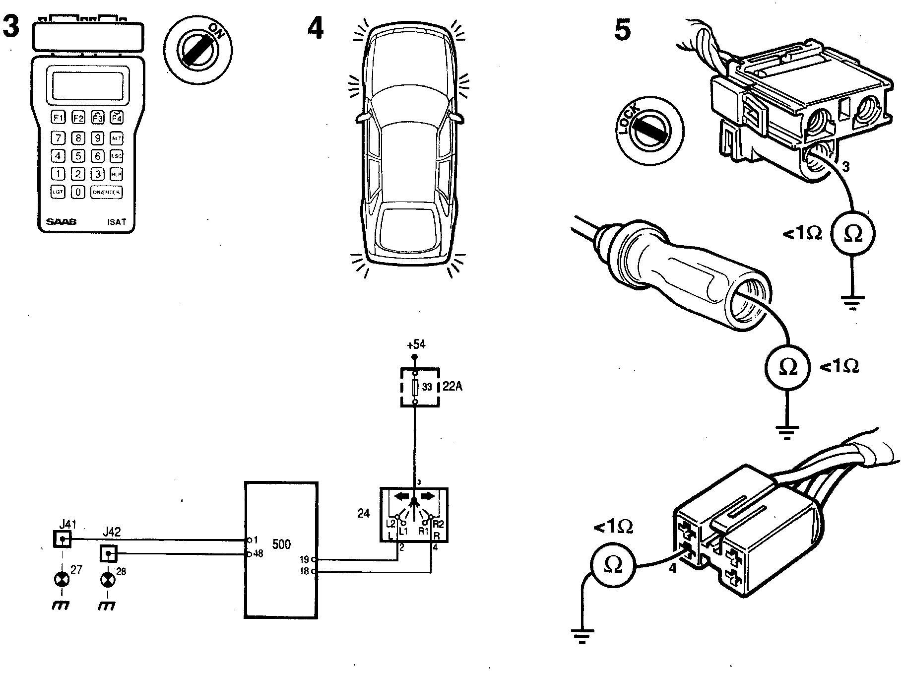 3 Plug in the Intelligent Saab Tester (ISAT) scan tool and select "READ FAULT CODES" from the menu. If any diagnostic trouble codes are present, continue in Trouble Code Tables.