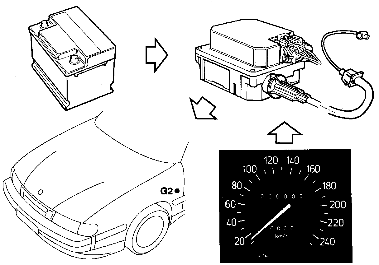 The control module incorporates an electric stepping motor which mechanically regulates the Cruise Control cable connected to the throttle body, either retracting it or extending it according to the speed of the car.