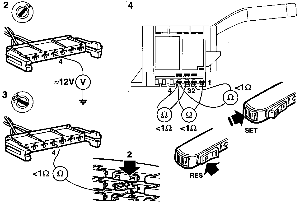 - pin 2 of the switch connector and pin B (2) of the Cruise Control connector.