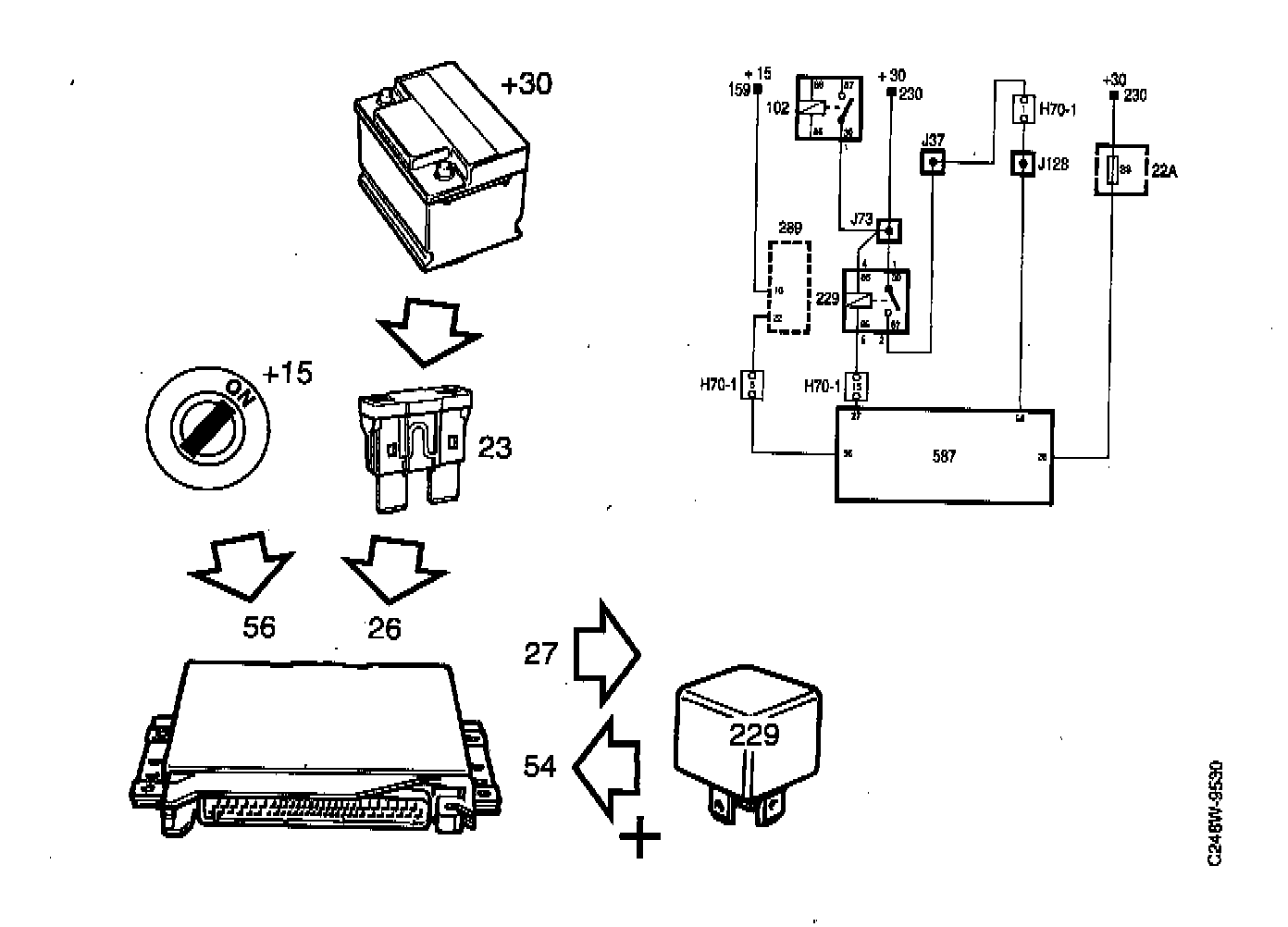 The control module uses this current (+30 circuit) for its memory. The engine will not start without current from the +30 circuit.