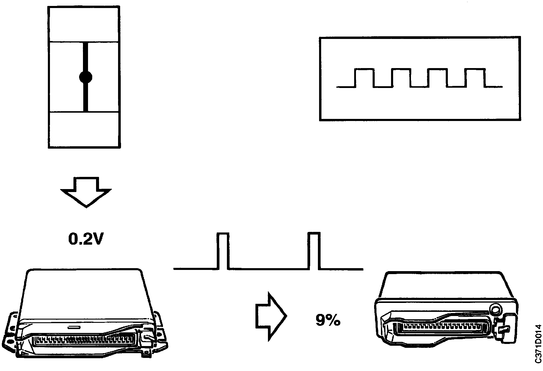 PWM signals in this case always have a pulse ratio of 9% in the closed throttle position (higher when the accelerator is depressed), regardless of any voltage drop or tolerances.