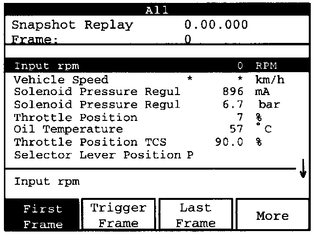 Here is the recording's first set of values. They were recorded 54 seconds (or 442 updates) before the "Trigger" display key was pressed.