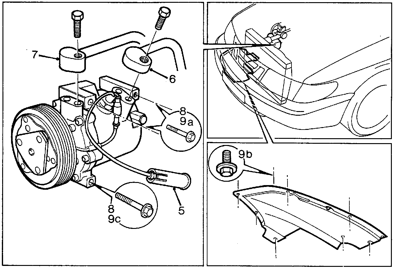 9 Fill up with compressor oil, carry out vacuum pumping of the A/C system and fill up with refrigerant.
