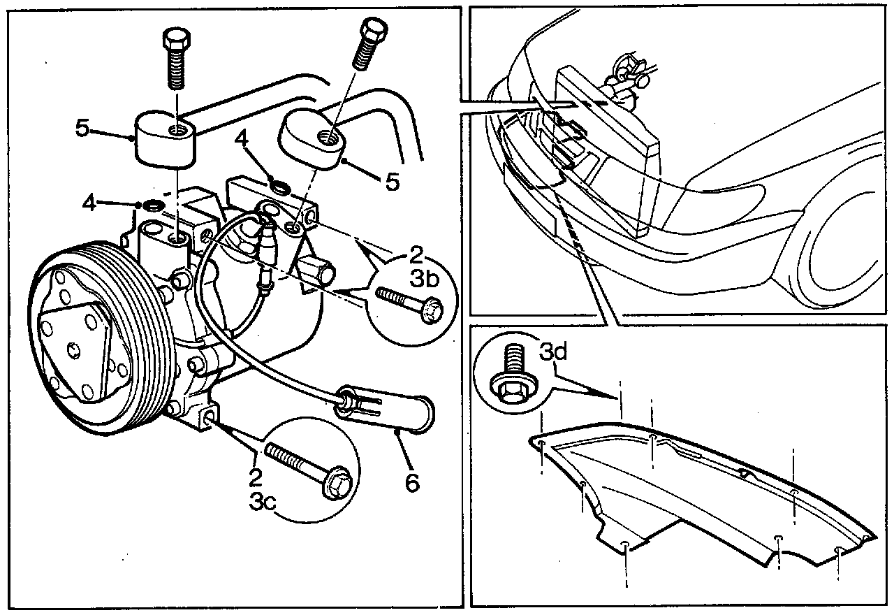 a. Remove the compressor's two upper retaining bolts.
