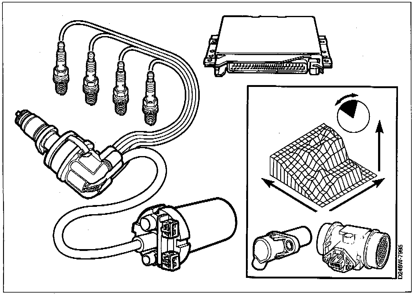 The Motronic 4.1's ignition system is a conventional inductive ignition system with ignition coil, distributor and HT cables. The firing order is 1-3-4-2.