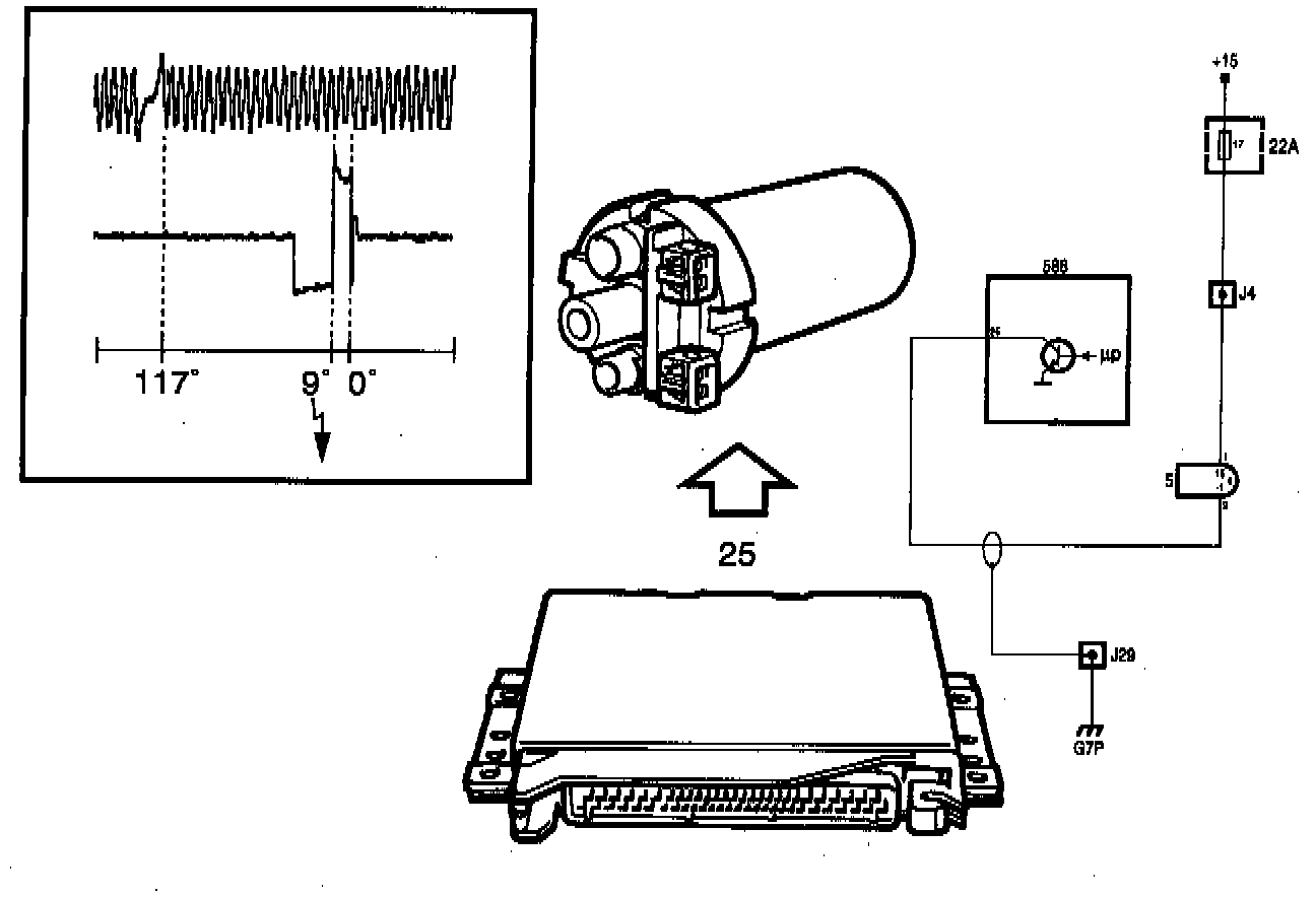 Incorporated in the distributor is a camshaft position sensor (Hall effect sensor) which, by means of a field rotor flange with a gap, tells the control module when cylinder 1 is under compression.