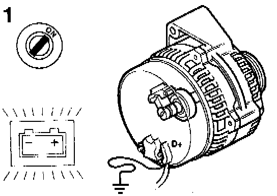 1 If the lamp fails to light up when the ignition is switched on, ground the 0+ terminal on the alternator while the ignition is still switched on.