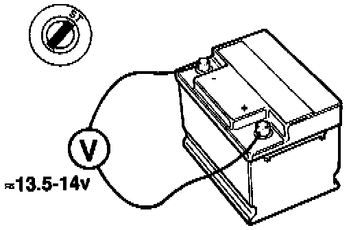 A reading of about 13.5 - 14 V should be obtained.