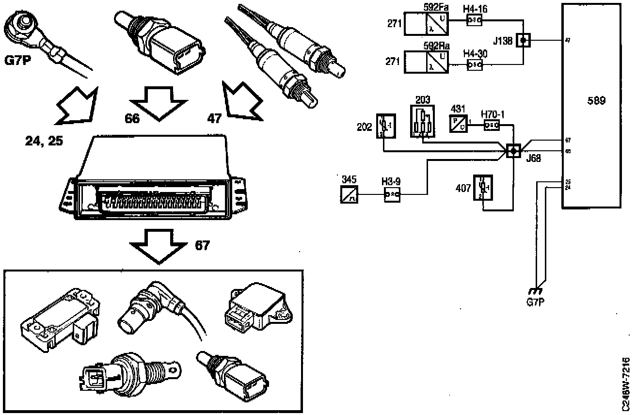 The leads connected to the crankshaft position sensor and the leads from the oxygen sensors are also screened via pin 67 of the engine control module. The engine will not start without sensor ground.