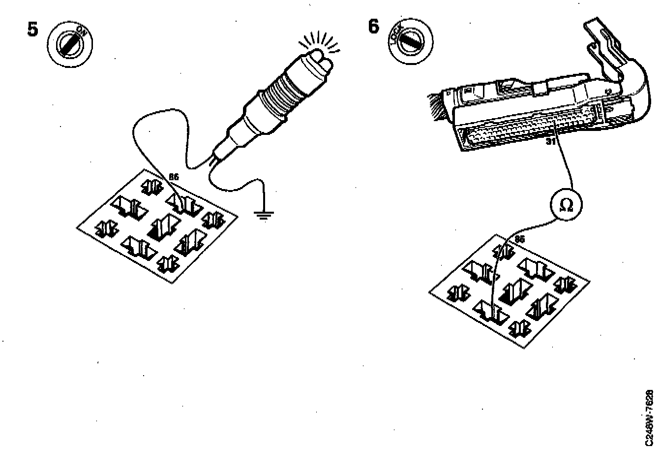 ^ Check the lead between pin 86 and battery positive (B+). Repair or replace it if necessary.