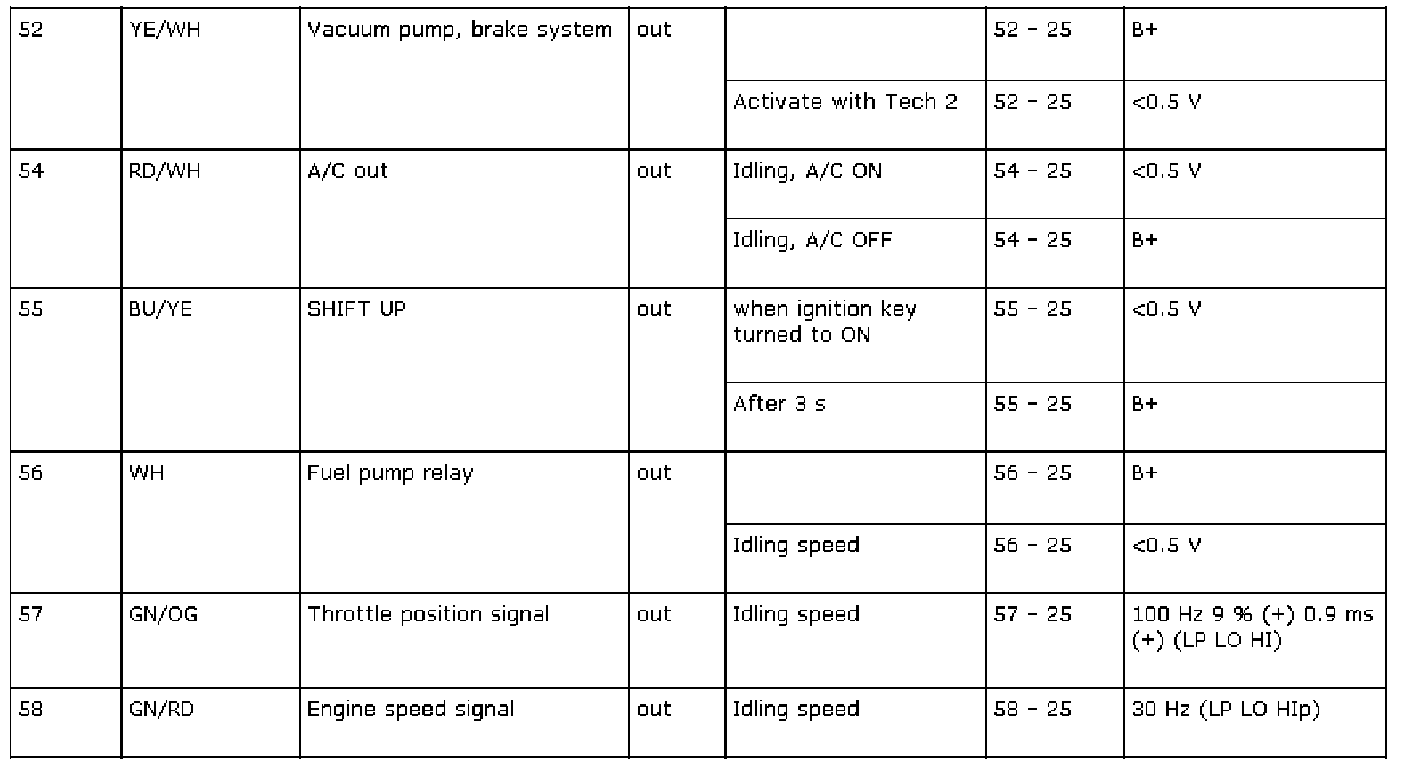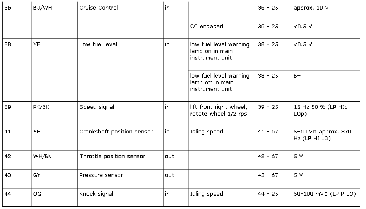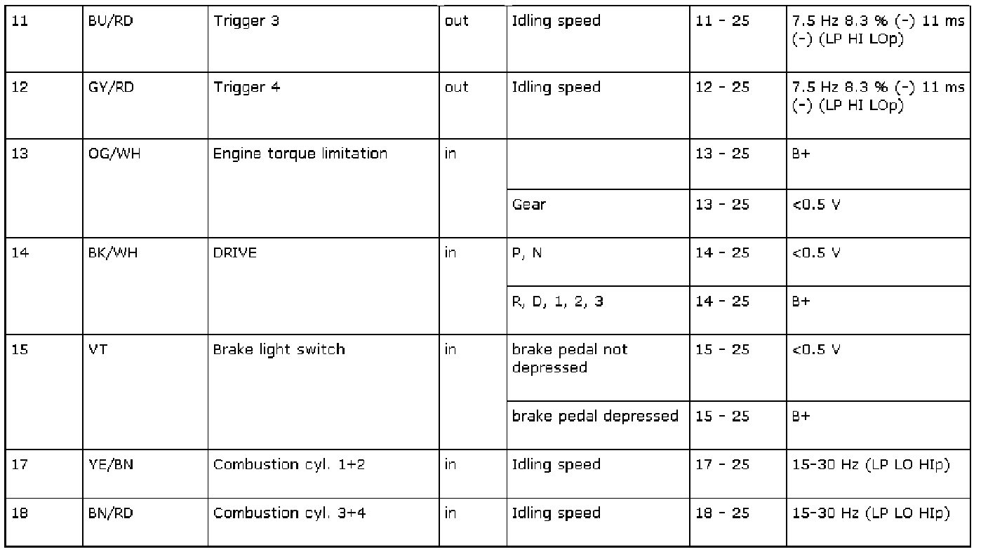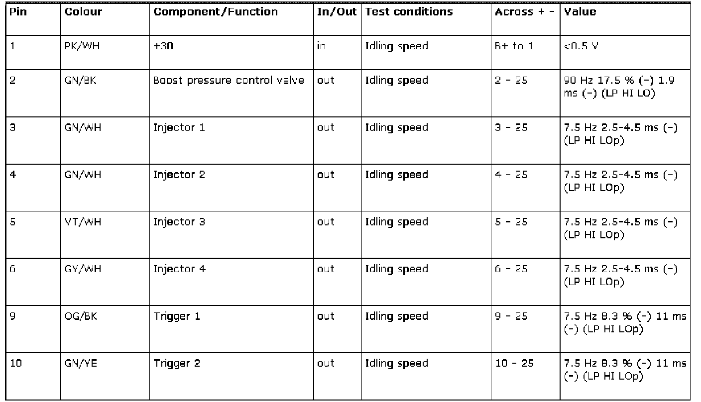 The following contain readings and directions for measuring signals/levels on the Trionic control module.