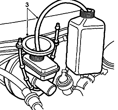 3. Connect the filler cap (included in the brake bleeder kit 88 19 096) to the brake fluid reservoir. Place a hose with one end in the filler cap and the other in a container of fresh brake fluid.