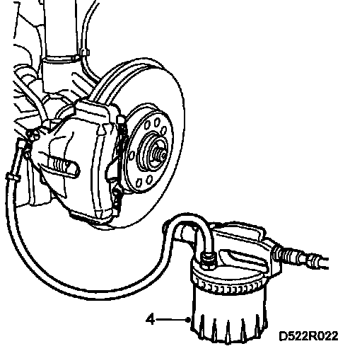 4. Raise the car and connect the suction pump hose to the bleed nipple on the LH front wheel.