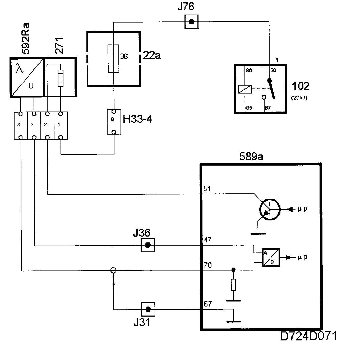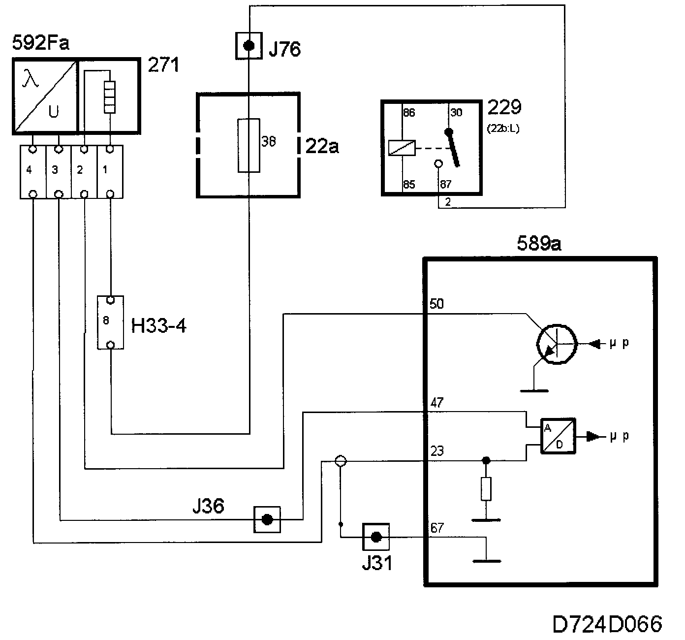 hhhhh order to supply voltage quickly after start, the oxygen sensor must be pre-heated. Pre-heating is supplied with B+ from the main relay via fuse 38 and is grounded via control module pin 50. The control module estimates the exhaust temperature based on the load and engine speed. Pre-heating is disengaged if the exhaust temperature is high.