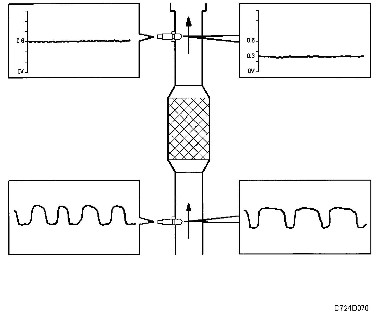 If the engine is running too rich (Lambda below 1), the sensor output voltage will be approx. 0.9 V.