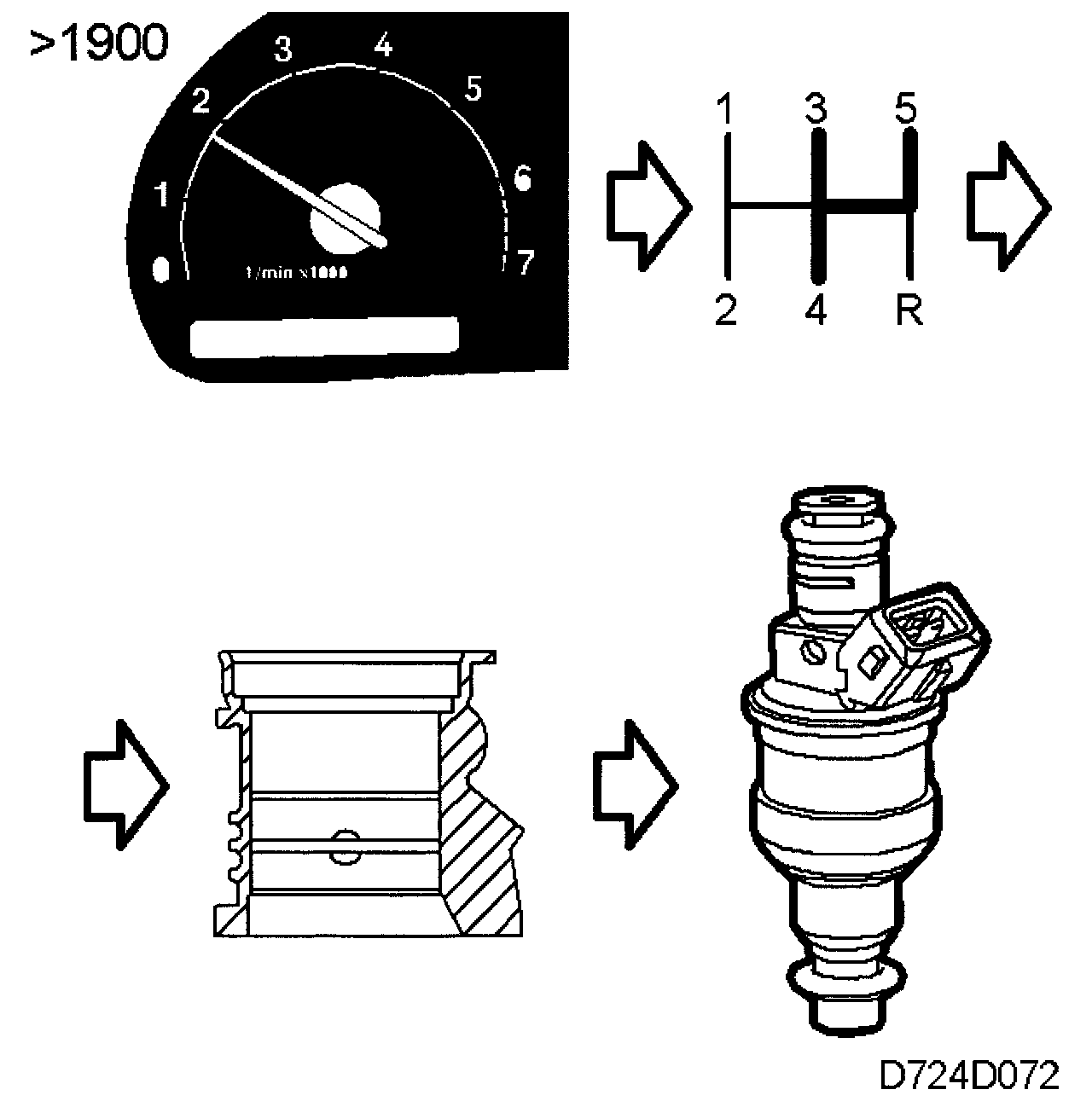 Fuel shut-off will take place after a certain delay (a few seconds) when the throttle is fully closed and engine speed is above 1900 rpm in gears 3, 4 and 5.