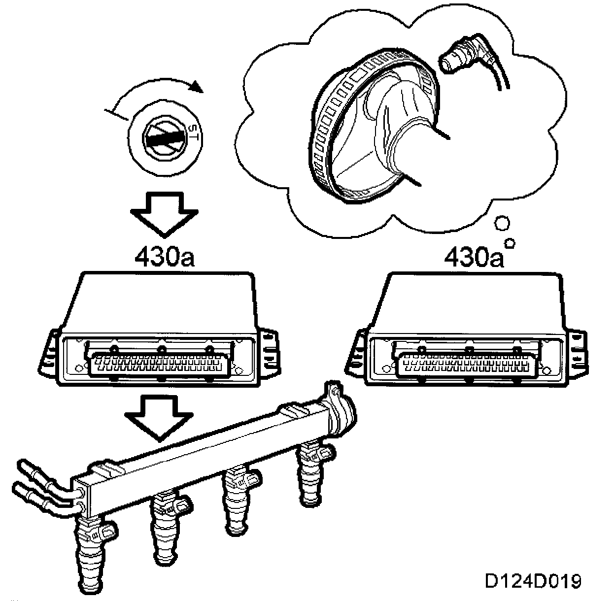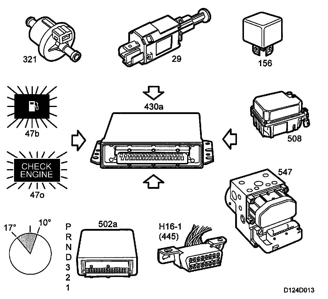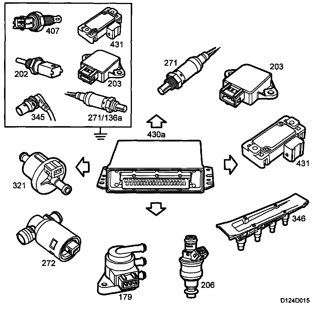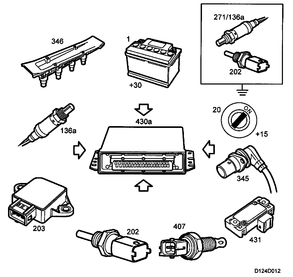 After the ignition has been turned off, all the sensors supplied with 5 V will remain active for 15 minutes. Diagnosis can still be performed with the diagnostic tool during this time. After 15 minutes, only the memory will be active. Adapted values are stored in the memory.