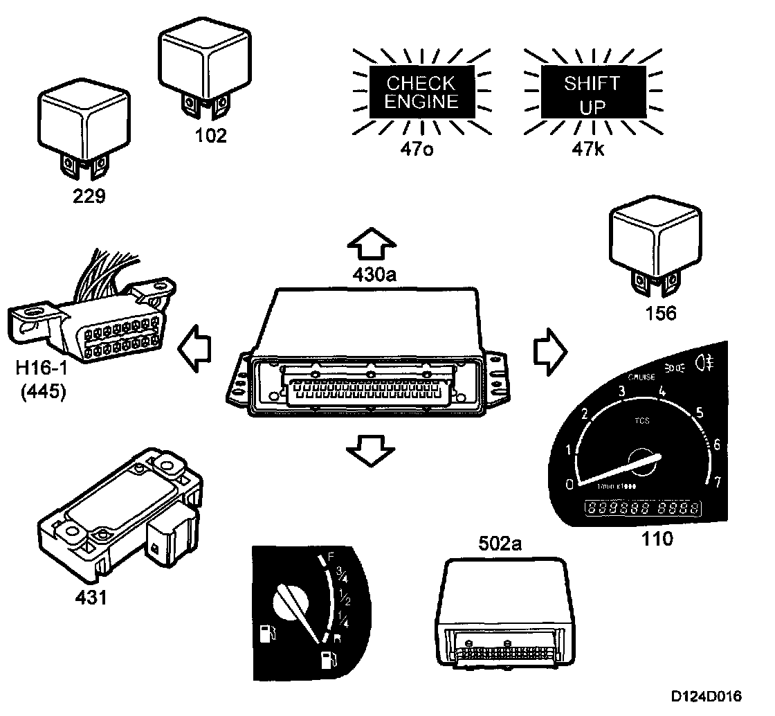 When the ignition is turned on, the control module will be activated and the CHECK ENGINE lamp will go on for a functional check. The control module will then await impulses from the crankshaft position sensor.