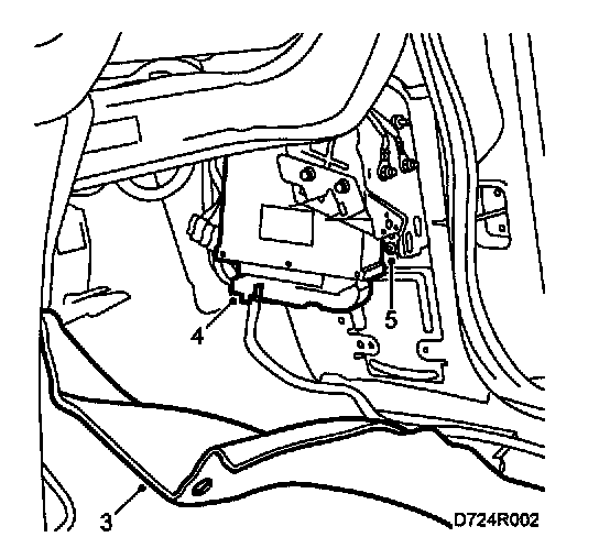3 Fold back the carpet and remove the central locking system relay.