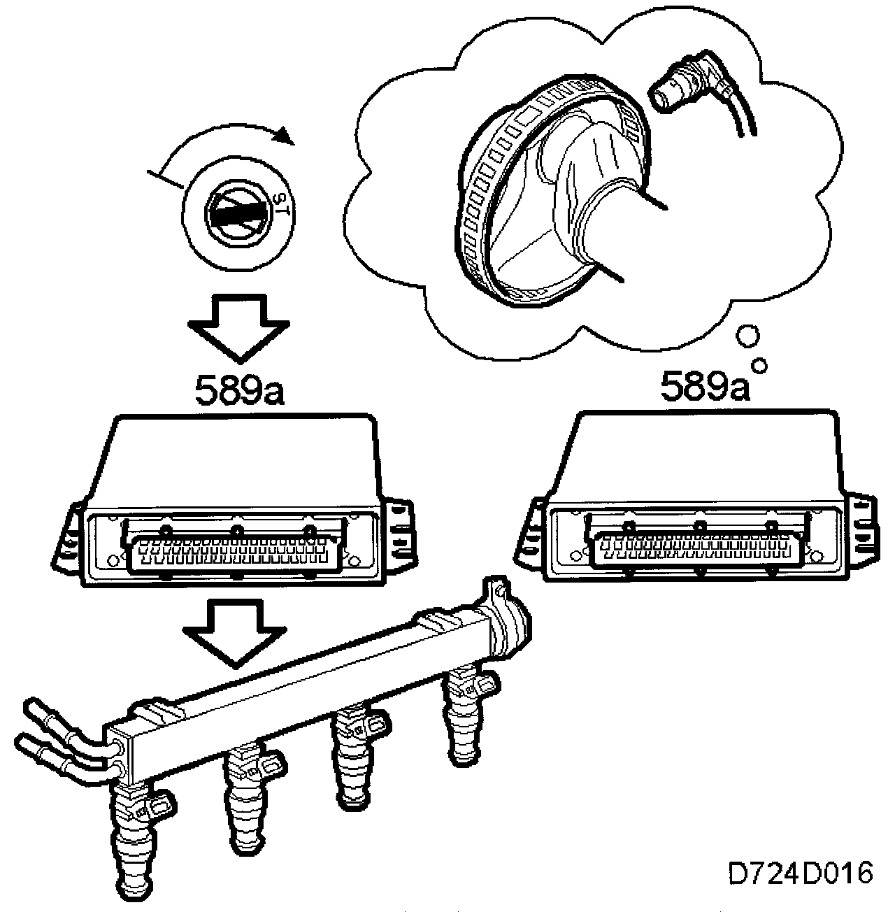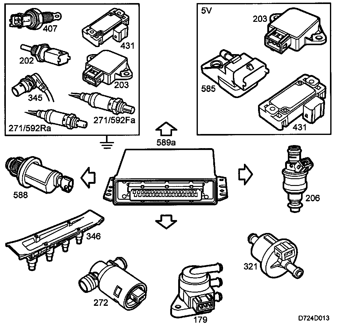 After the ignition has been turned off, all the sensors supplied with 5 V will remain active for 15 minutes. Diagnosis can still be performed with the diagnostic tool during this time. After 15 minutes, only the memory will be active. Adapted values are stored in the memory.