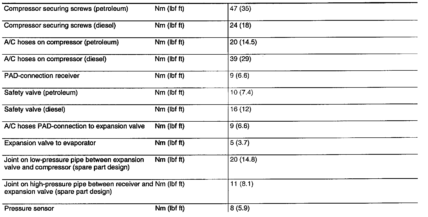 Tightening Torques