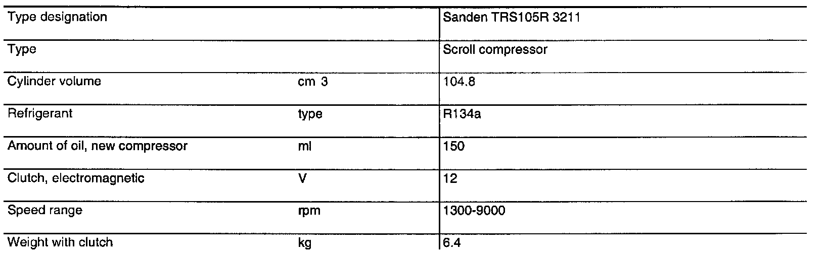 Compressor HVAC: Specifications