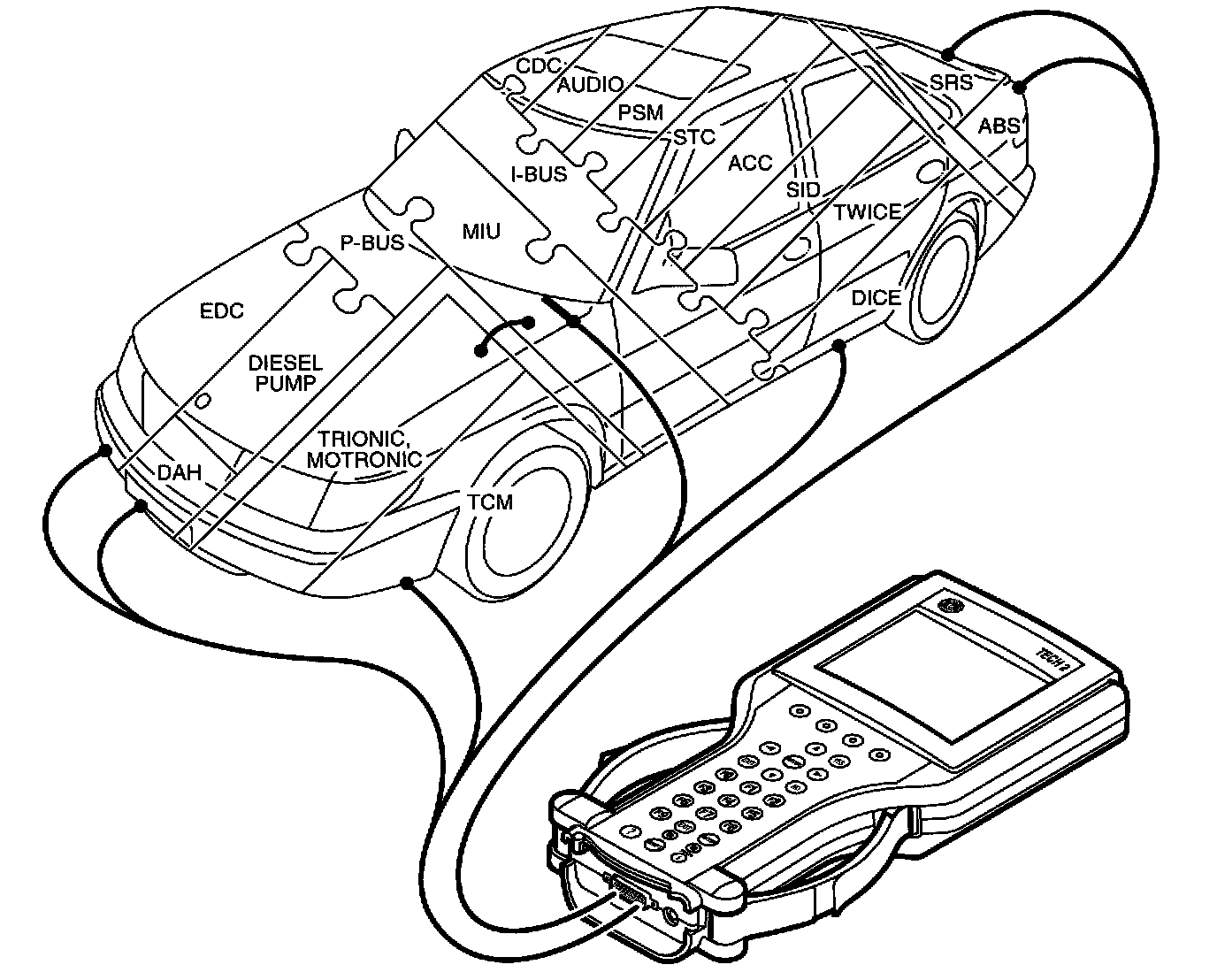 In addition, the P-bus is also connected to the MIU (the main instrument display panel). The MIU is responsible for making the information available on one bus also available on the other bus.