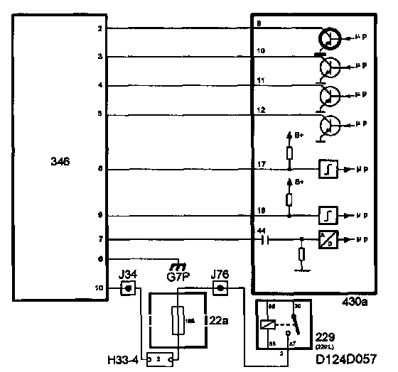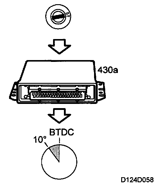 When starting, the control module cannot determine which of the cylinders 1 and 4 is on its compression stroke and consequently ignition will take place in cylinders 1 and 4 simultaneously. Correspondingly, ignition takes place in cylinders 2 and 3 in the same way. The ignition and fuel injection will be synchronized to the firing order of the engine as soon as combustion signals arrive at control module pins 17 and 18.