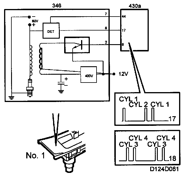 If the crankshaft position sensor indicates that cyl. 1 and 4 are at TDC at the same time as a B+ pulse arrives at control module pin 17, the control module will know that cyl. 1 has fired.