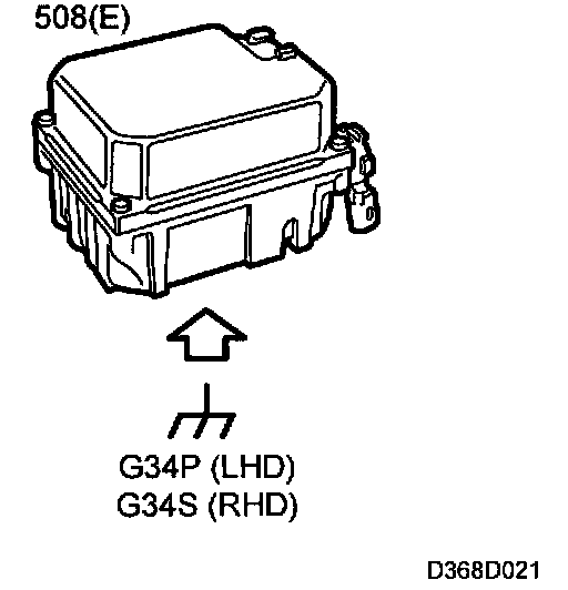 The control module is grounded via terminal 5 (E) to grounding point G33P on the bracket below the left-hand A pillar.