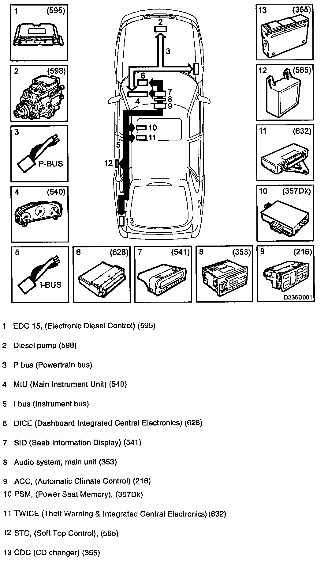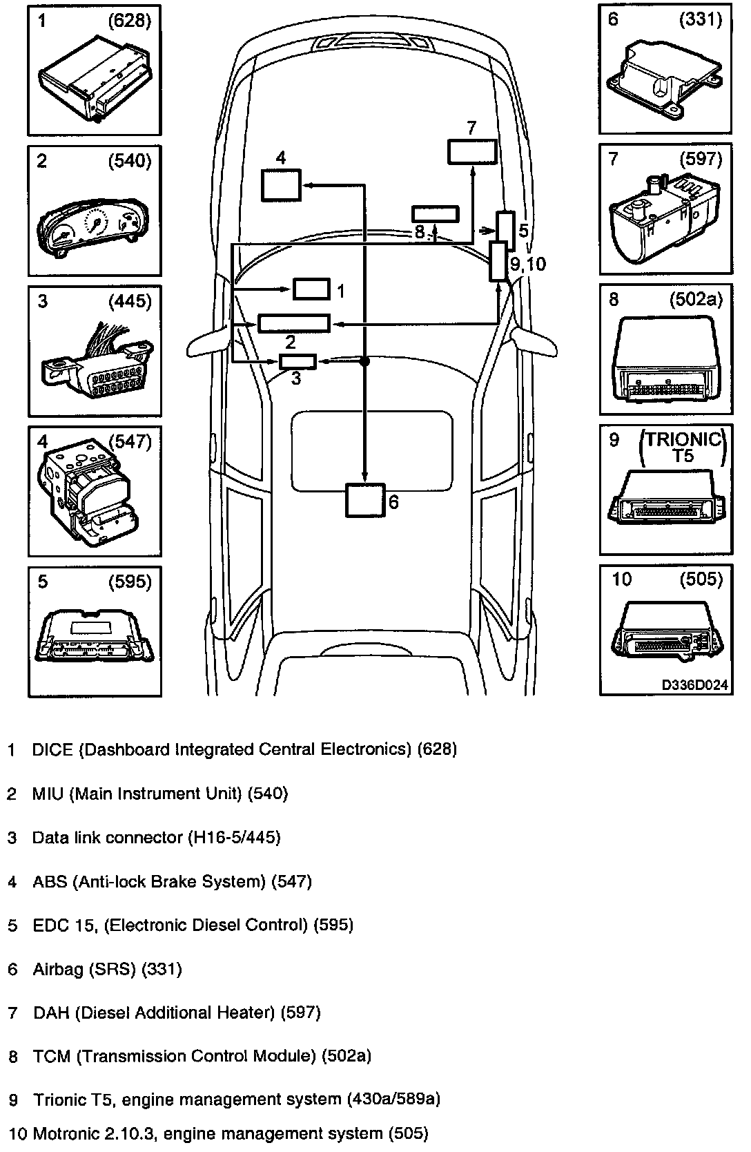 All the other bus systems communicate with the diagnostic tool via DICE, one of the I bus control modules.