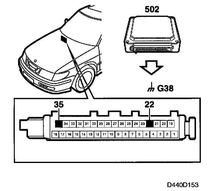 The control module is grounded through pin 22 and pin 35 to grounding point G38.
