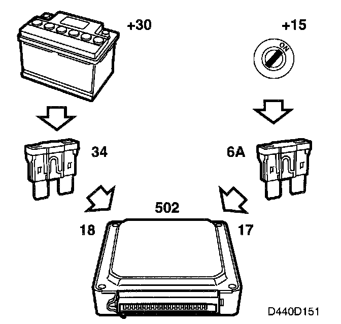 +30 voltage is fed via fuse 34 to the control module pin 18. The control module uses this voltage for its memory.