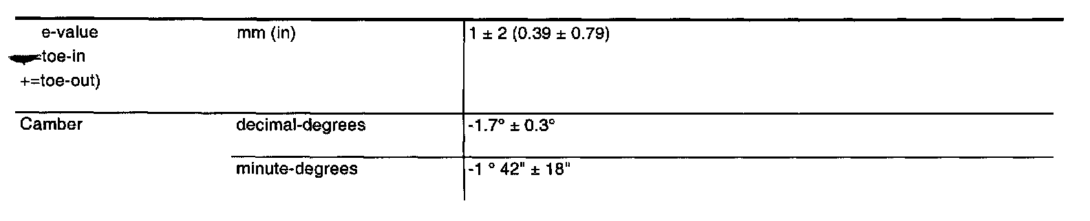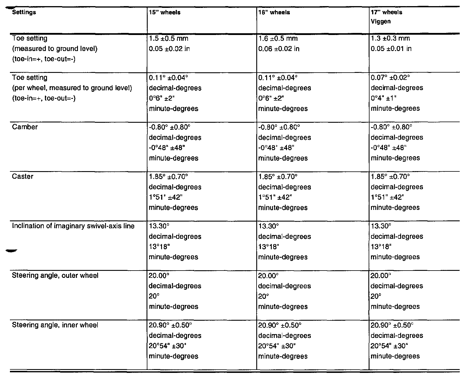 Front wheel alignment, unladen car with full tank
