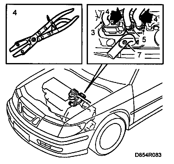 4 Fit hose clamp pliers part. No.30 07 739 on the hoses by the heater box.