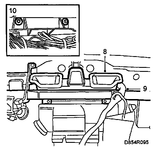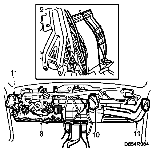 9 Fit the cable harness on the dashboard member.