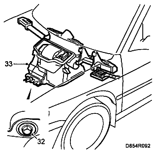 32 Remove the bolt that secures the climate control unit to the lower part of the bulkhead.