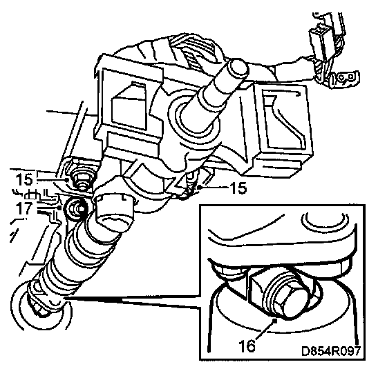 17 Fit the bolt that secures the support on the steering column to the dashboard member.