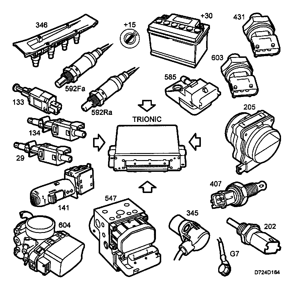 Substitute functions are available for all the sensors except the crankshaft position sensor. An absolute pressure sensor for atmospheric pressure is integrated in the control module.