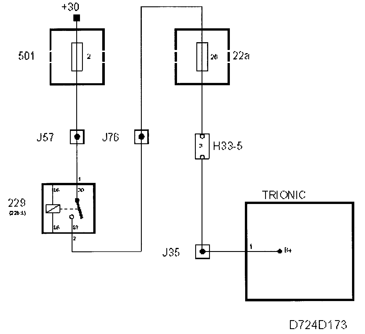 The main relay, fuel pump relay and fuse 17 are supplied with +30 from maxi fuse 2. Control module pin 23 is supplied from fuse 28.