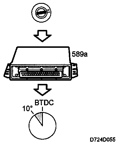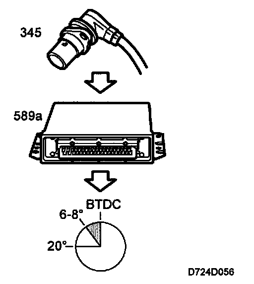 It the engine speed drops, e.g. when the radiator fan is engaged, the ignition will be advanced up to max. 20 BTDC to increase the engine torque and maintain engine speed. Correspondingly, the ignition is retarded if the engine speed increases.