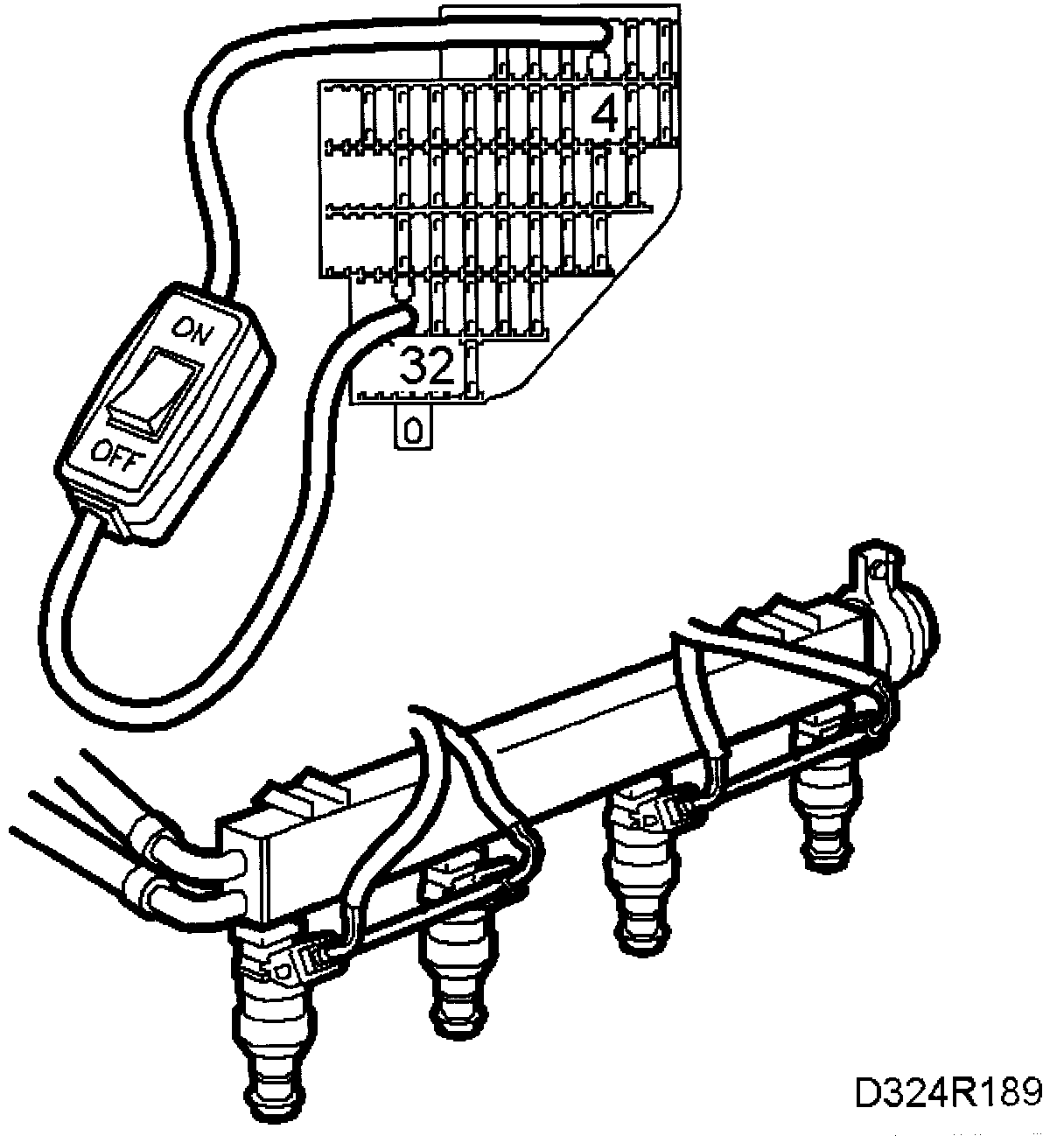 2 Start the fuel pump by attaching a jumper lead between fuses 4 and 32.